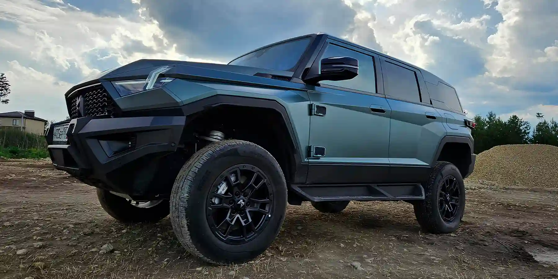 На тест нам достался самый интересный цвет под названием Khaki (темно-зеленый). Есть еще черный Blackout и серый Titan. Машина в любом случае будет матовой, что только подчеркивает рубленые грани и сложные формы кузова. Можно выбрать один из нескольких вариантов резины и колесных дисков, также доступен набор фирменных аксессуаров.