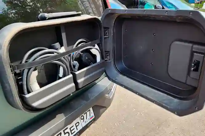 Еще один важный момент — это три электромотора, которые суммарно выдают 816 л.с. и 1050 Нм. С такой отдачей 3-тонный внедорожник может разогнаться до «сотни» всего за 6 секунд! Ощущения при нажатии педали газа в пол действительно впечатляют, но есть один нюанс. Если заряд батареи будет небольшим, то и динамика просядет.