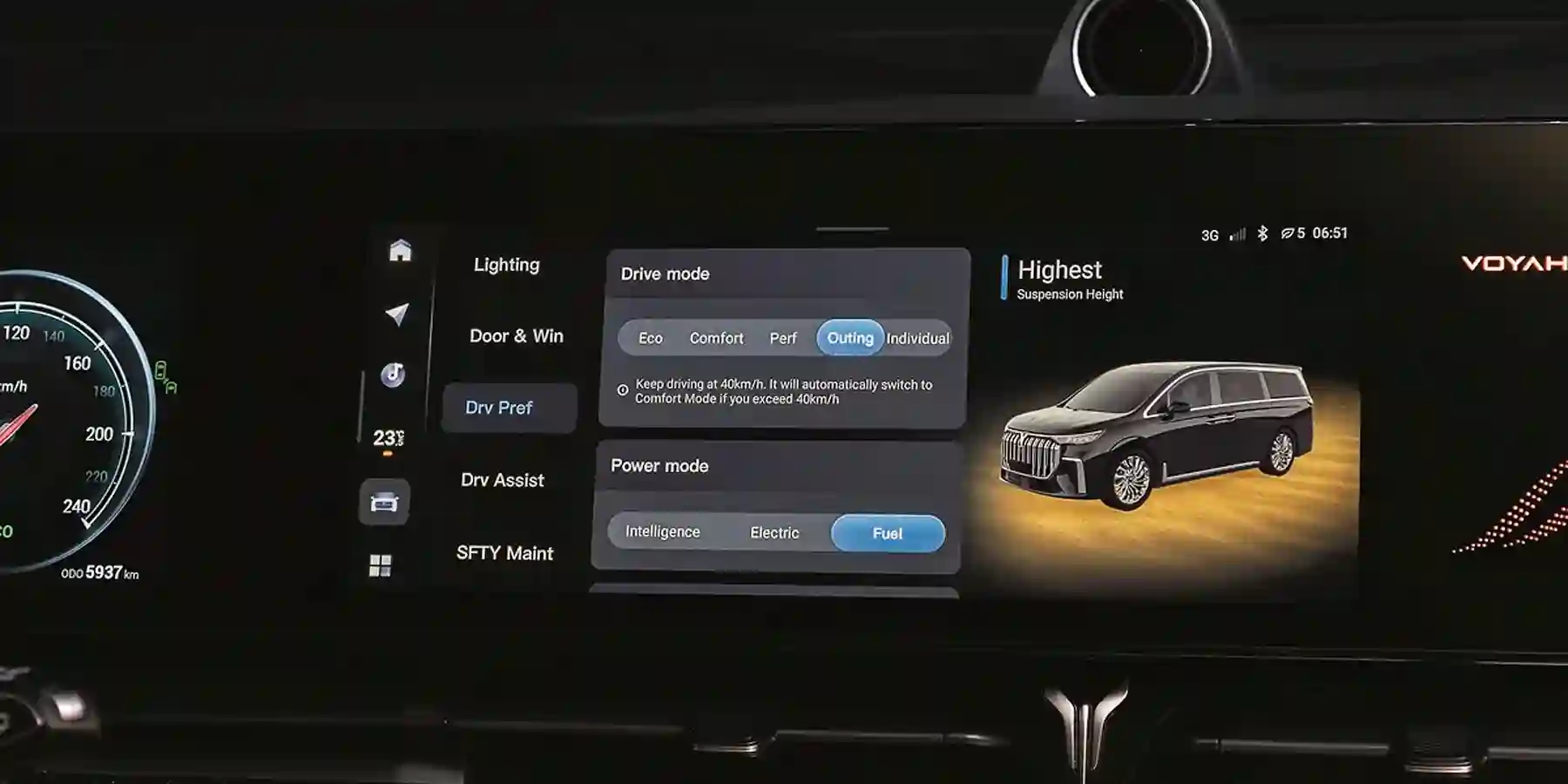 Отпираешь автомобиль — в салоне оживают экраны. Если надавить педаль тормоза, загорится надпись о готовности к старту. Переключайся на Drive — и вперед. Но я поехал отнюдь не скоро. Целых полчаса исследовал обширные глубины меню, и появилось ощущение, что буду пилотировать не максивэн Voyah Dream, а самолет Boeing Dreamliner.