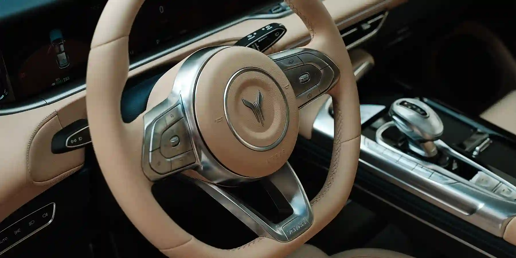 В качестве спецэффектов — интеллектуальная панорамная крыша с регулировкой затемнения (такая же технология у Boeing), выдвигающиеся ручки дверей и светодиодная оптика, объединенная единой линией с логотипом. Последний, как принято в Китае, наделен особым смыслом. Литера V представляет собой мифическую исполинскую рыбу по имени Кунь, которая выныривает из воды и становится птицей по имени Пэн, устремляющейся в небеса.